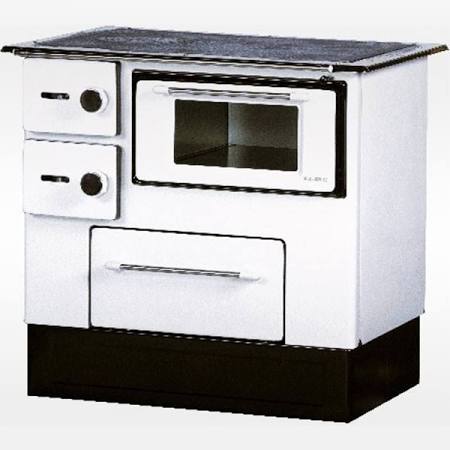 - Sporák s troubou určený na ohřívání a pečení vyrobený v kombinaci materiálů litina a ocel, smaltovaný ocelový plášť a šamotové desky.