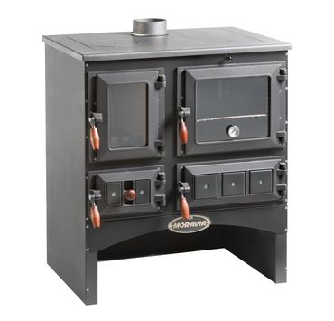 Sporák na pevná paliva s troubou KVS MORAVIA typ 9170 Oliver je určen k vytápění, vaření, pečení a ohřívání pokrmů. Topeniště umožňuje použití dřevěných polen o délce do 340 mm a průměru do 160 mm.