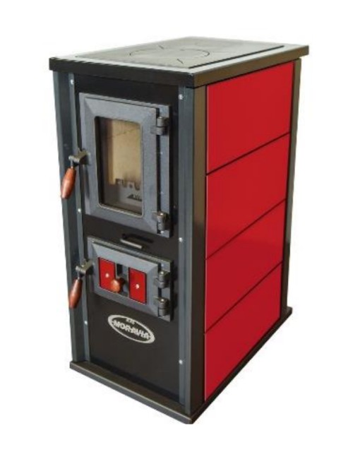 Kuchyňský sporák s plotnou a s litinovými prosklenými dvířky topeniště. Je určen k vytápění, vaření a ohřívání pokrmů.