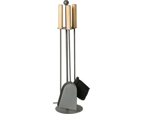 Udělejte si svůj krb jedinečný s kvalitním raakouským krbovým příslušenstvím. 3-dílná sestava krbového nářadí na stojánku v barvě antracit s dřevěnýmí držadly. Součástí je smetáček, lopatka a háček. Výška 59 cm, průměr 15cm.