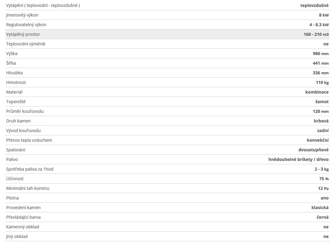 Wamsler OF 804 Kamino Trendy jsou krbová kamna dvouplášťového provedení. Ohniště je vyloženo šamotovou výstelkou a pojme polena o maximální délce 35 cm. Regulace vzduchu se děje prostřednictvím páčky v popelníkových dvířkách. Obě dvířka jsou litinová. Kamna Wamsler OF 804 Kamino Trendy lze napojit na kouřovod pouze zadním vývodem o průměru 120 mm. Rozměry skla jsou 265 x 190 mm a slouží ke kontrole hoření.