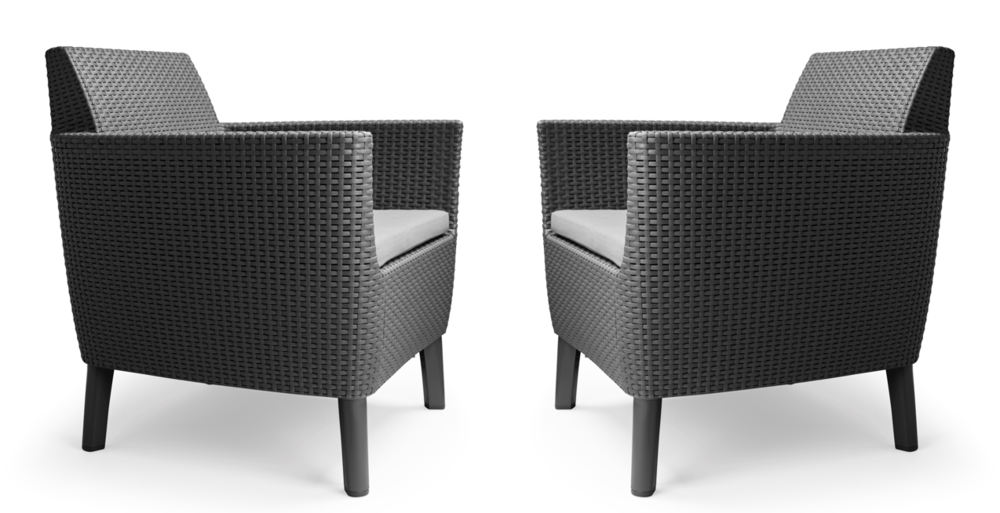 Zahradní set KETER Salemo DUO je souprava v imitaci ratanu, která skvěle vynikne nejen venku, ale i v moderní či klasicky zařízené domácnosti. Set zahrnuje dvě pohodlná křesla s měkkými poduškami a skvělým designem. Pevná ale lehká a stabilní konstrukce nábytku se skvěle hodí do exteriéru i interiéru. Nábytek je vysoce odolný proti UV záření a vlivům nepříznivého počasí. Jeho velkou výhodou je i jednoduchá údržba, snadné sestavení a manipulace.