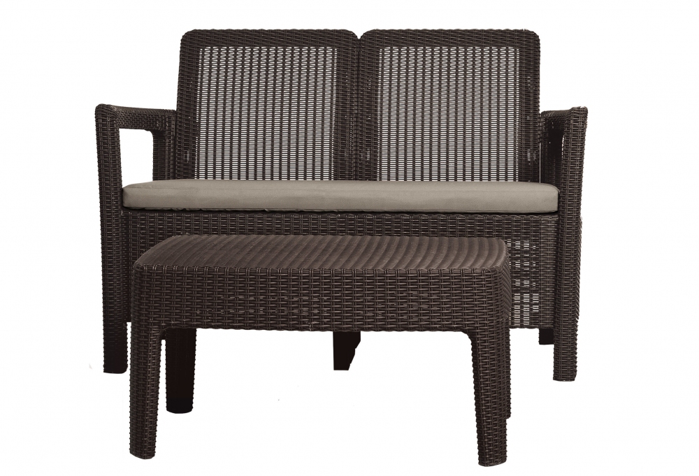 Zahradní set TARIFA je nábytková souprava s jemně zaoblenou povrchovou texturou imitující ratanovou vazbu. Set se skládá z dvousedadlové pohovky a obdélníkového stolu. Souprava nábytku se vyznačuje dlouhou životností a odolností vůči povětrnostním podmínkám i UV záření. Její elegantní design zkrášlí každou zahradu, terasu či balkón.