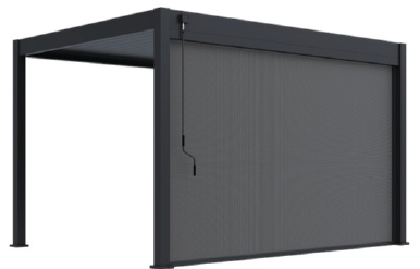 Pro maximální využití bioklimatických pergol nabízíme také příslušenství v podobě zástěny s hliníkovou konstrukcí a výplní z textilenu, která poskytne ochranu před větrem a zároveň vytvoří i příjemný stín.